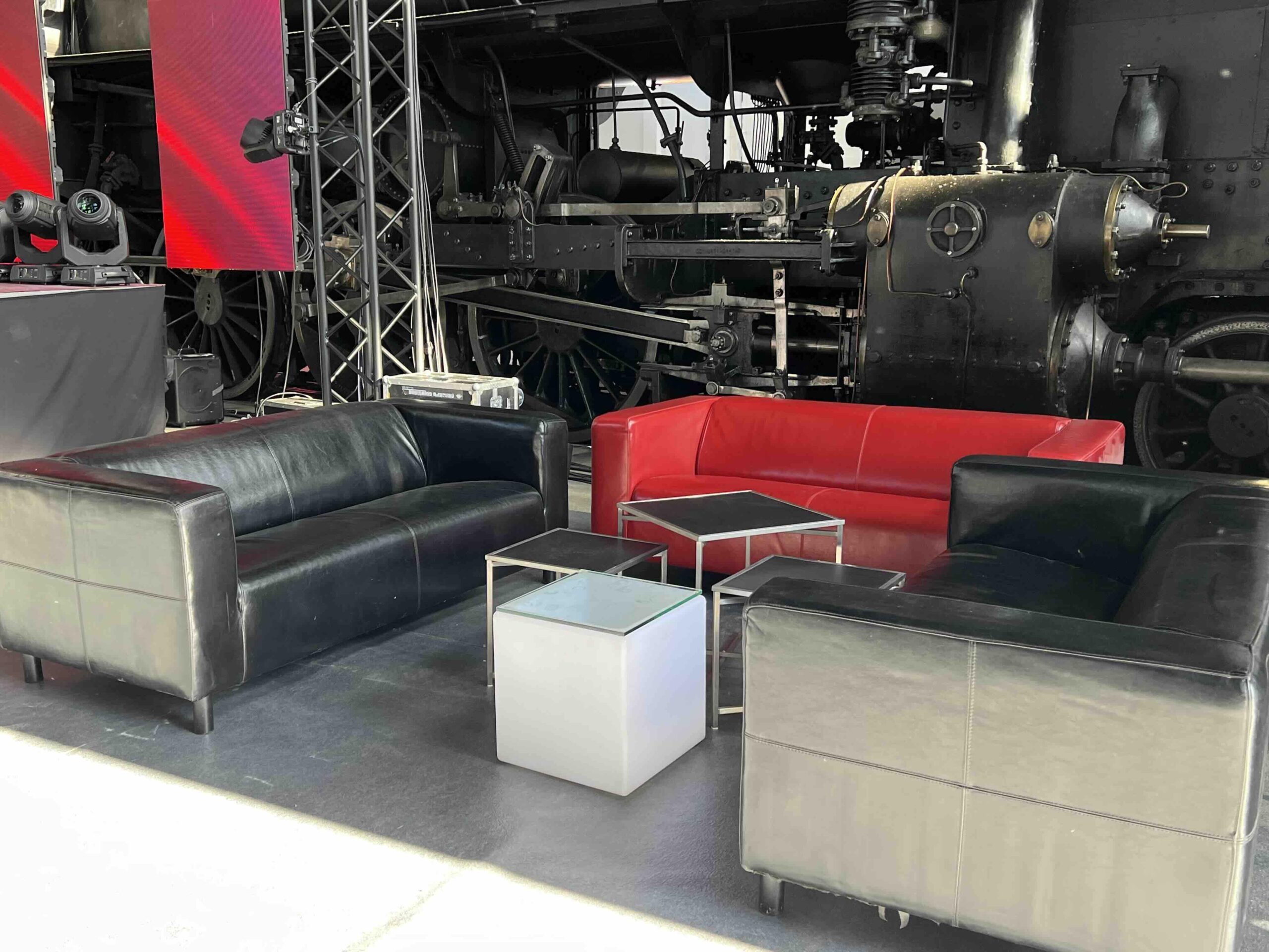 A Porsche 75. szülinapjára szinte ismét a teljes berendezést mi biztosítottuk az Imagine Event megbízásából. A márka nívóssága prémium bútorokat igényelt, de laza stílusban.