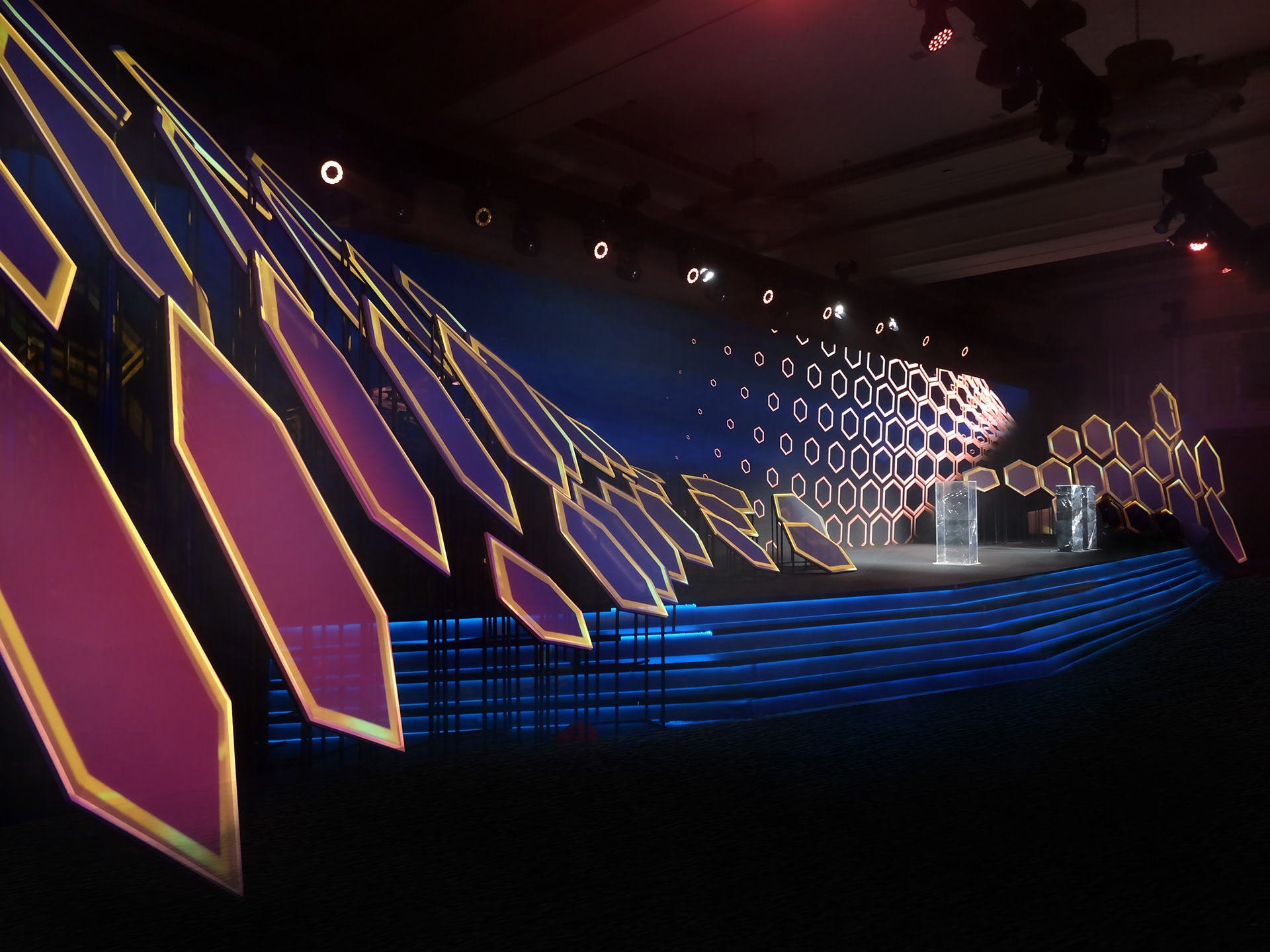 A 2017-es amszterdami projekt után 2018-ban is lehetőséget kaptunk, hogy a Párizsban megrendezésre kerülő HR Tech World konferencia főszínpadát megtervezzük. A projekt érdekessége az volt, hogy ugyanazzal az elemkészlettel dolgoztunk, amit egy évvel ezelőtt már felhasználtunk, így csökkentve a kivitelezési munka környezeti hatását.