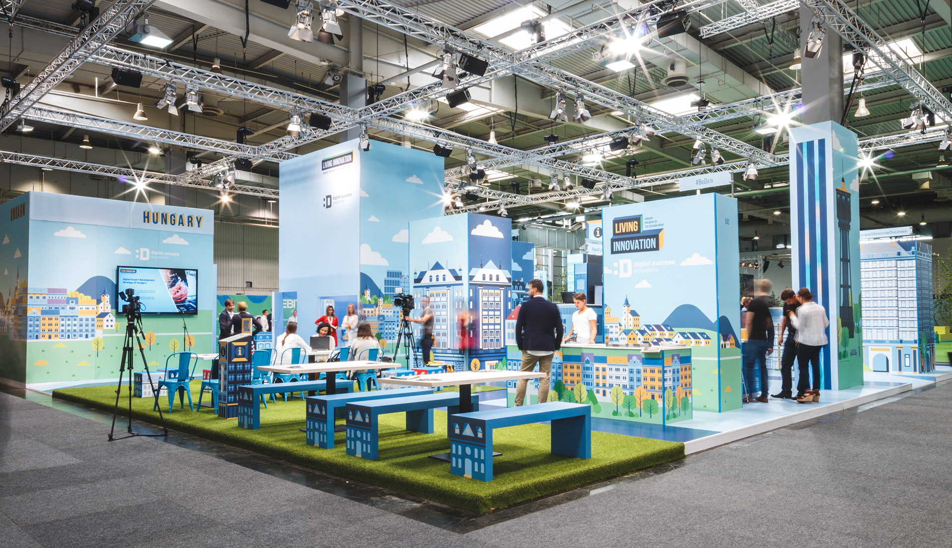 A Creacity-vel együttműködve másodszor terveztük meg a magyar pavilont a CEBIT kiállításra. A koncepció megalkotásakor a legnagyobb kihívás a tizenkét különböző területről érkezett kiállító integrálása volt. Városi hangulatot teremtettünk, amiben bemutattuk, hogyan jelenik meg és válik élővé az innováció a településeken és a vidéken.