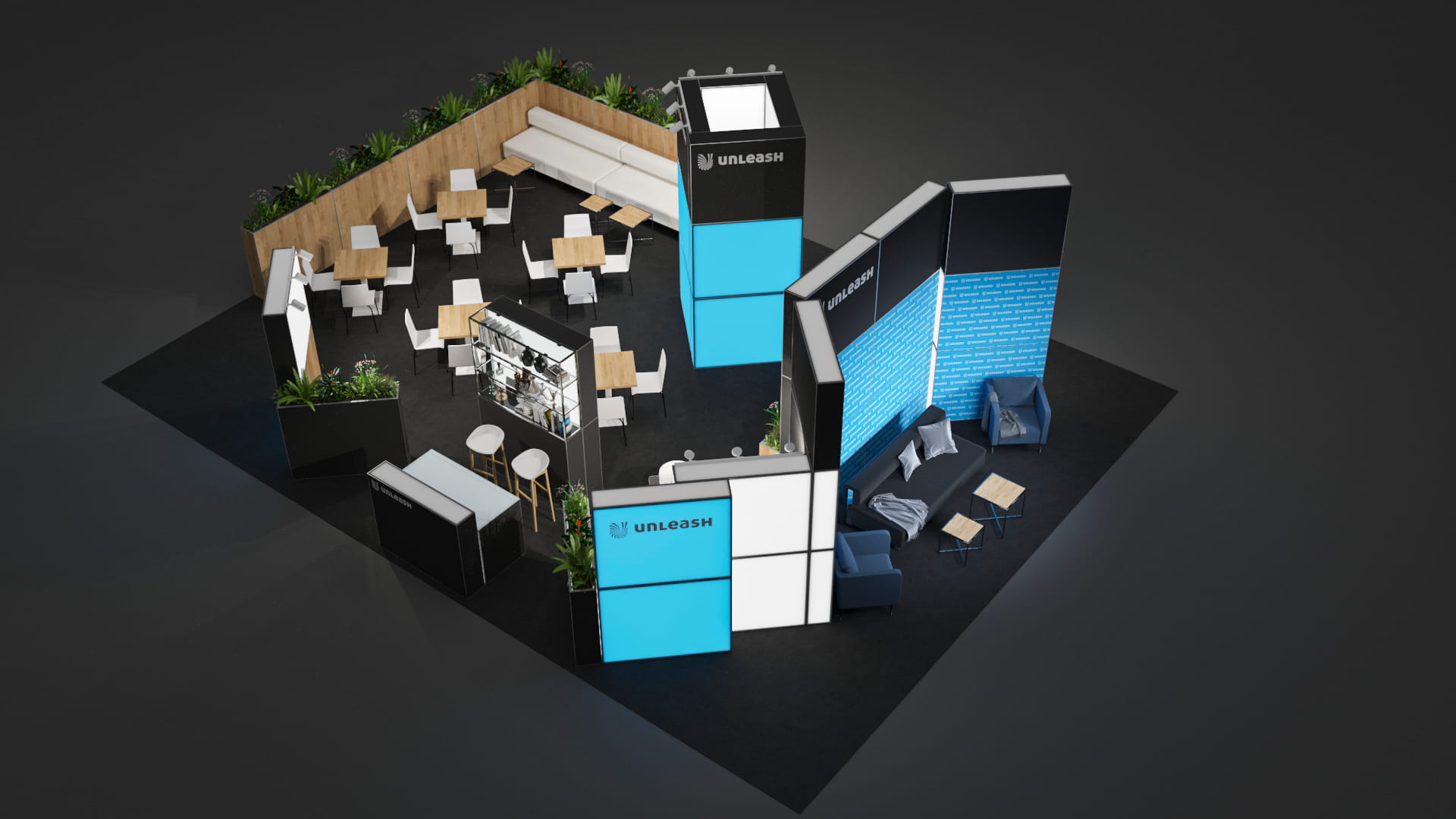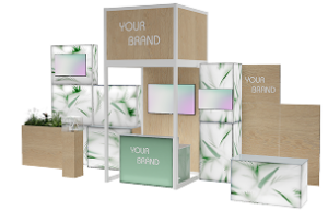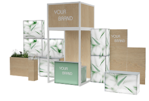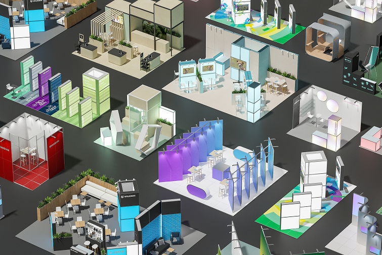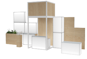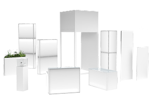 Az Aluvision FLEX BOX kül- és beltéri standrendszerének elemeiből építkezve különlegesen látványos tereket alkotunk.