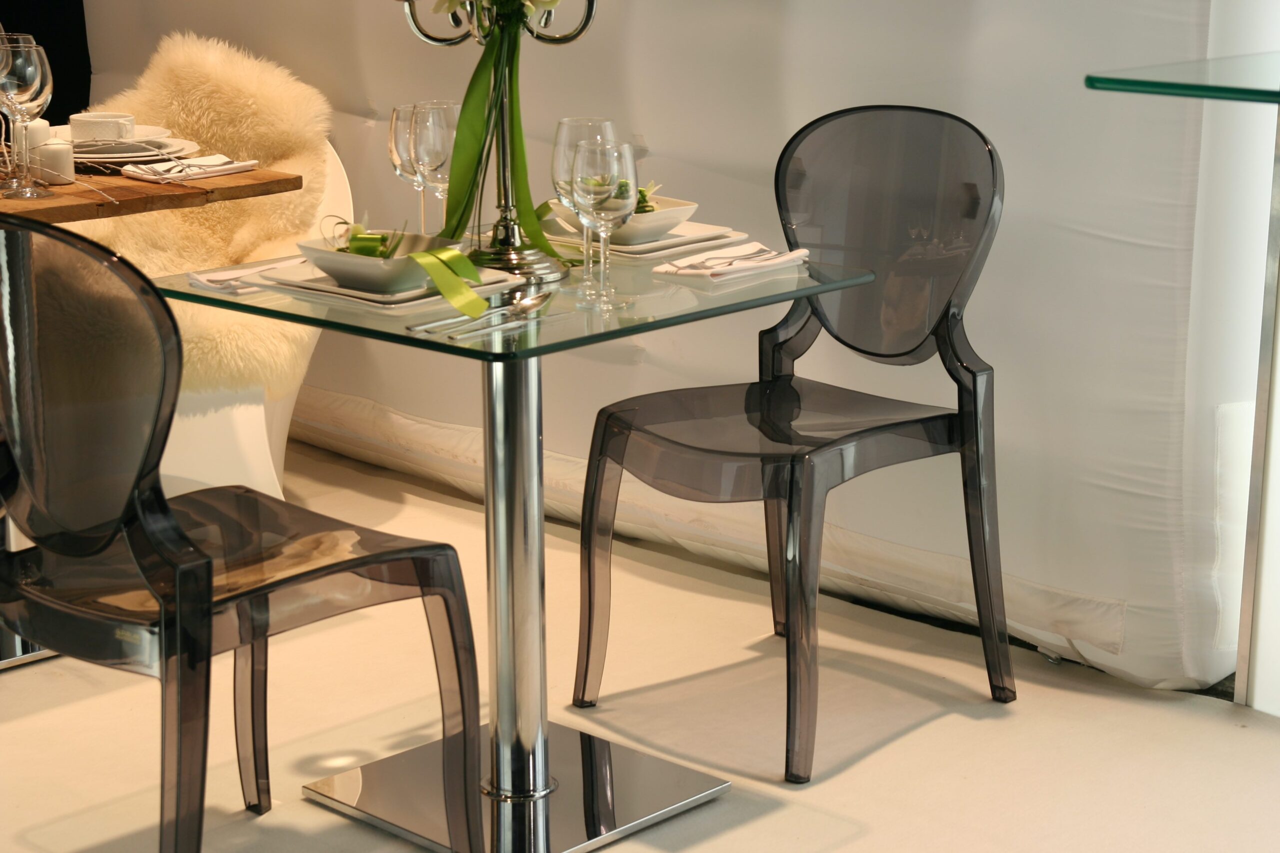asztal, üveg lappal