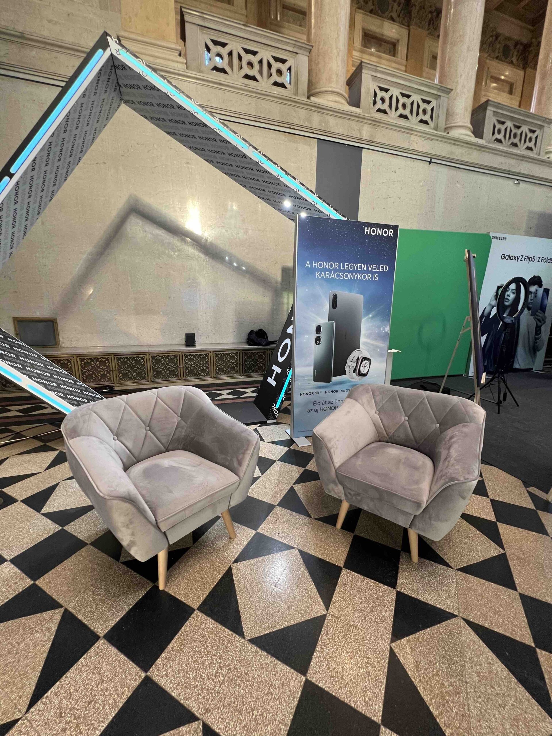 Skandináv stílusú, bársony fotel. Konferenciák, céges rendezvények kedvelt színpadi berendezése. Kanapé verzió is elérhető. Beltérre ajánljuk.