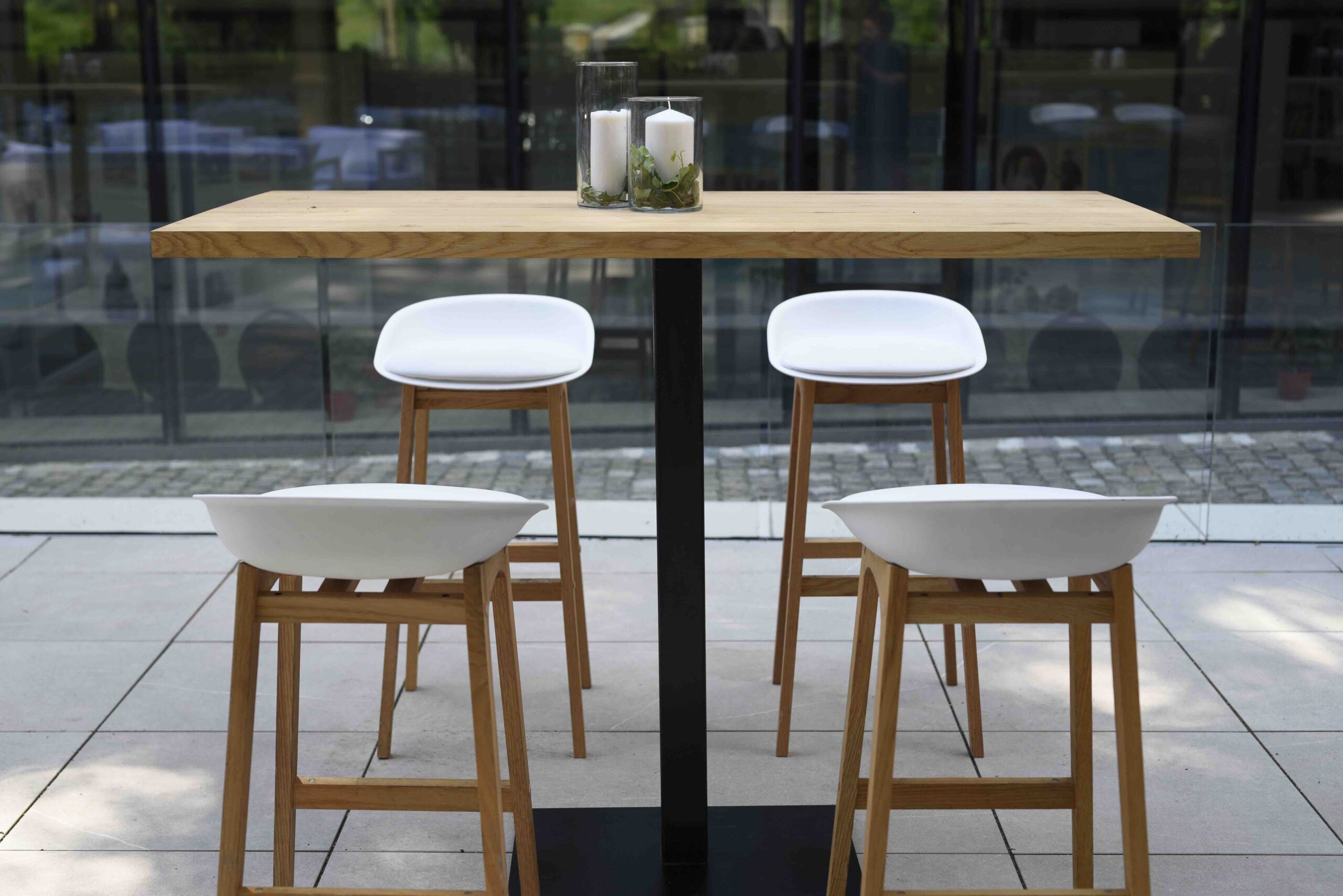 fehér bárszék, fa lábbal