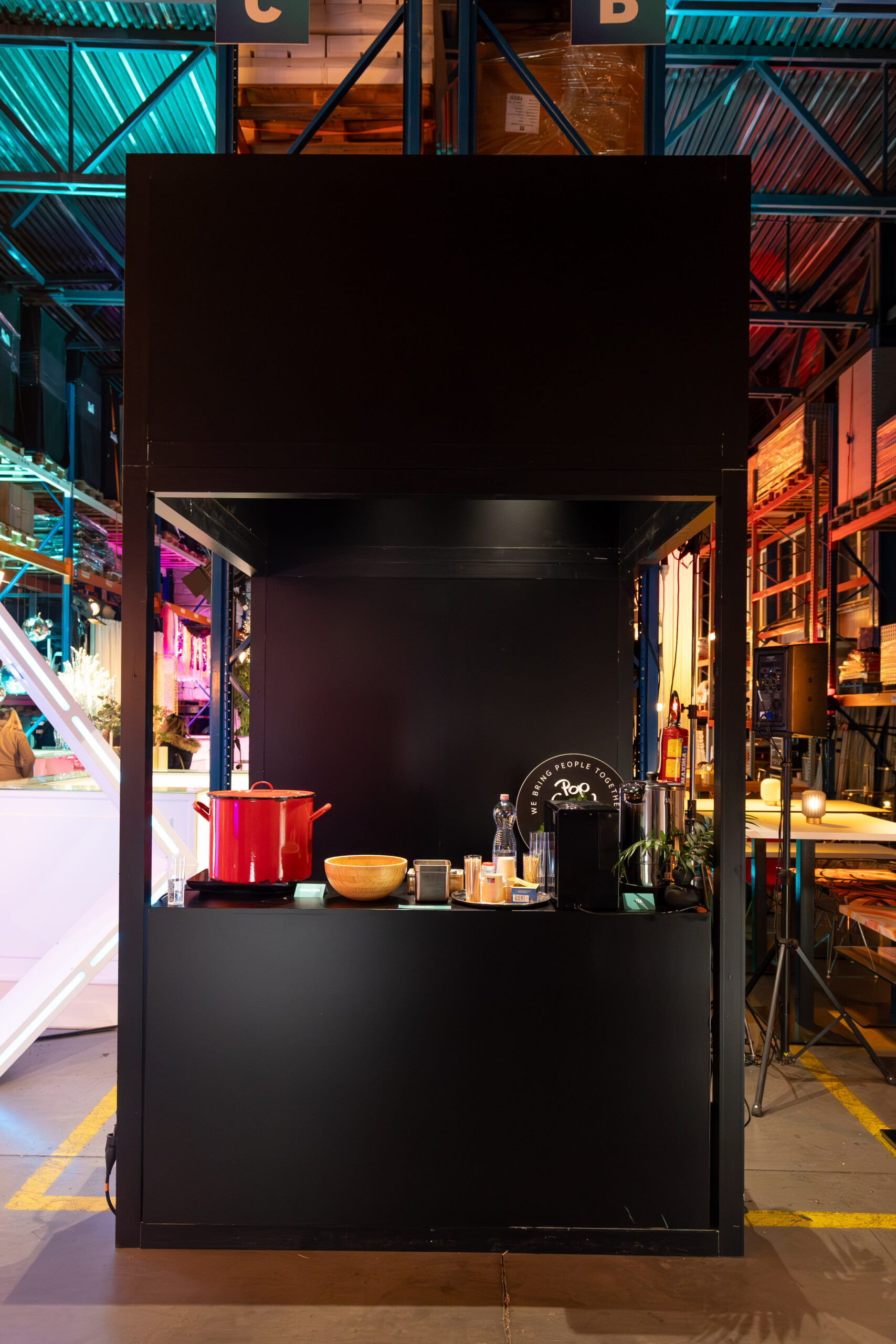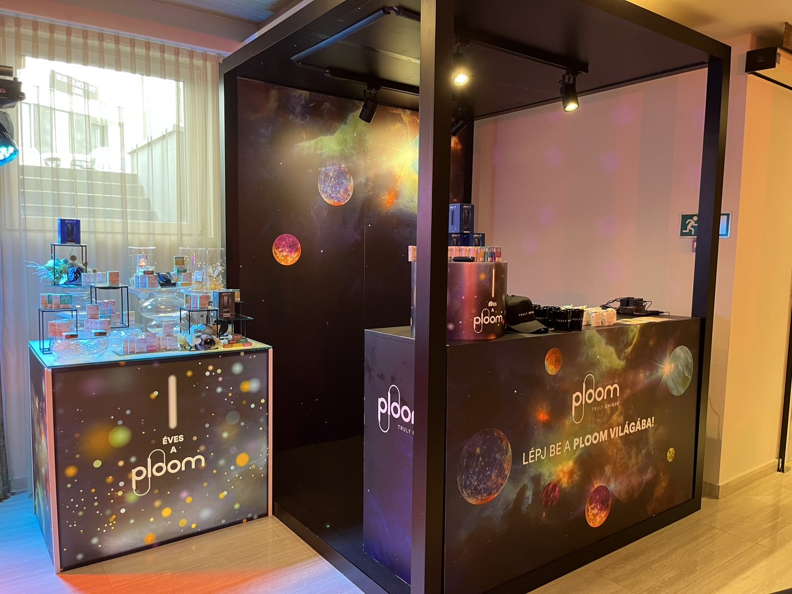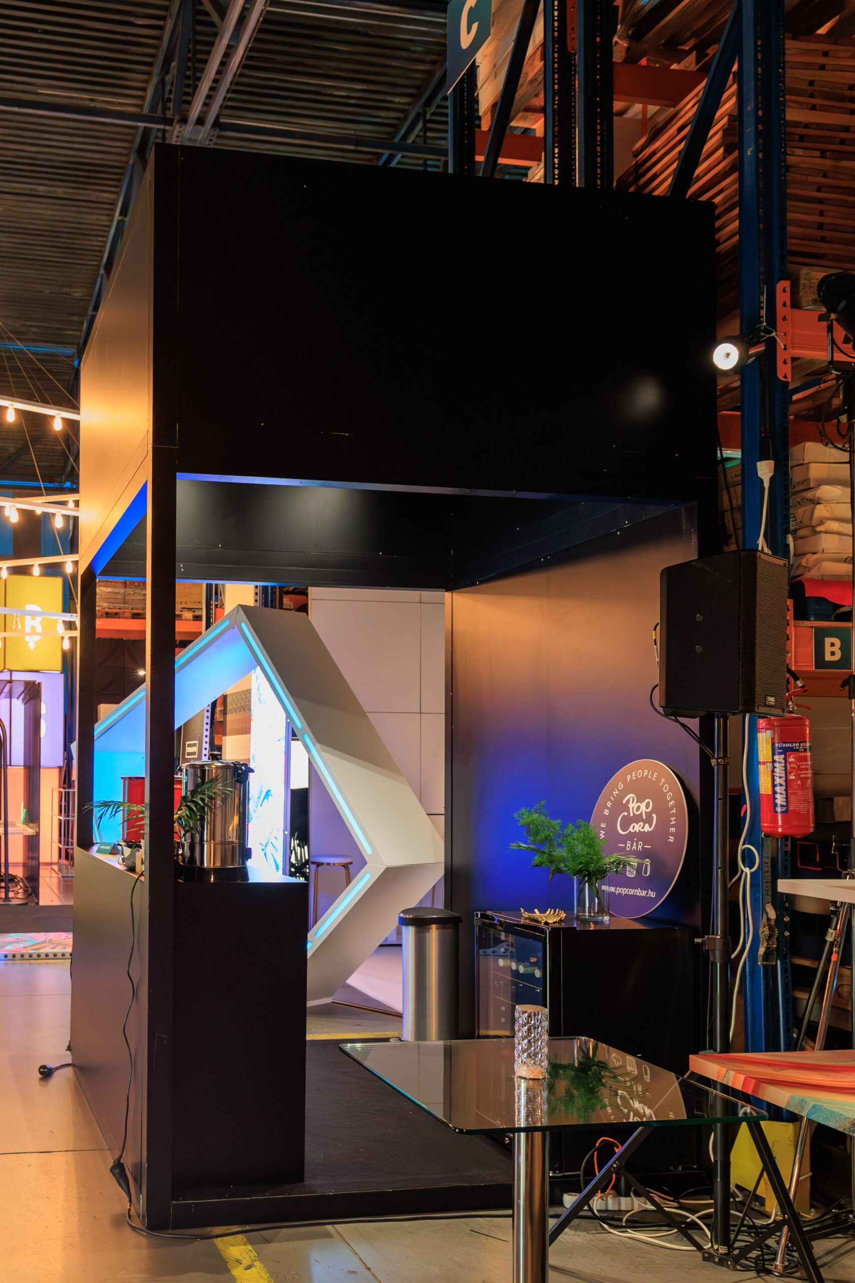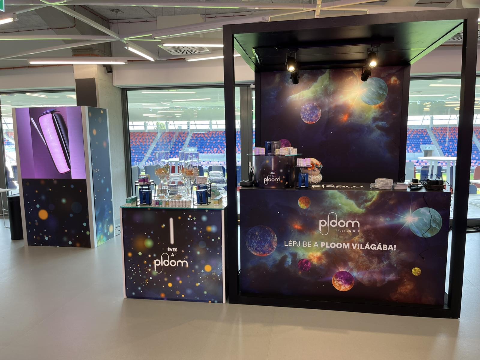 Személyre szabható kínáló stand. Zárható pulttal és látványos brandingelhető felületekkel. Beltérre ajánljuk.