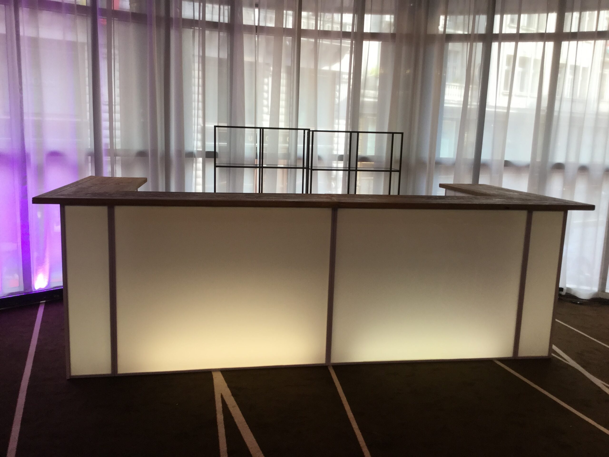 Világító bárpultunk üveg és tölgy lappal is elérhető. Látványosan brandingelhető 4C print fólianyomással, a tejfehér plexi egyedi kérés esetén, többféle színfóliával fényelhető. Lehetőség van egy standard méretű, 80 cm magas hűtő beépítésére. Többféle méretben elérhető. Beltérre ajánljuk.