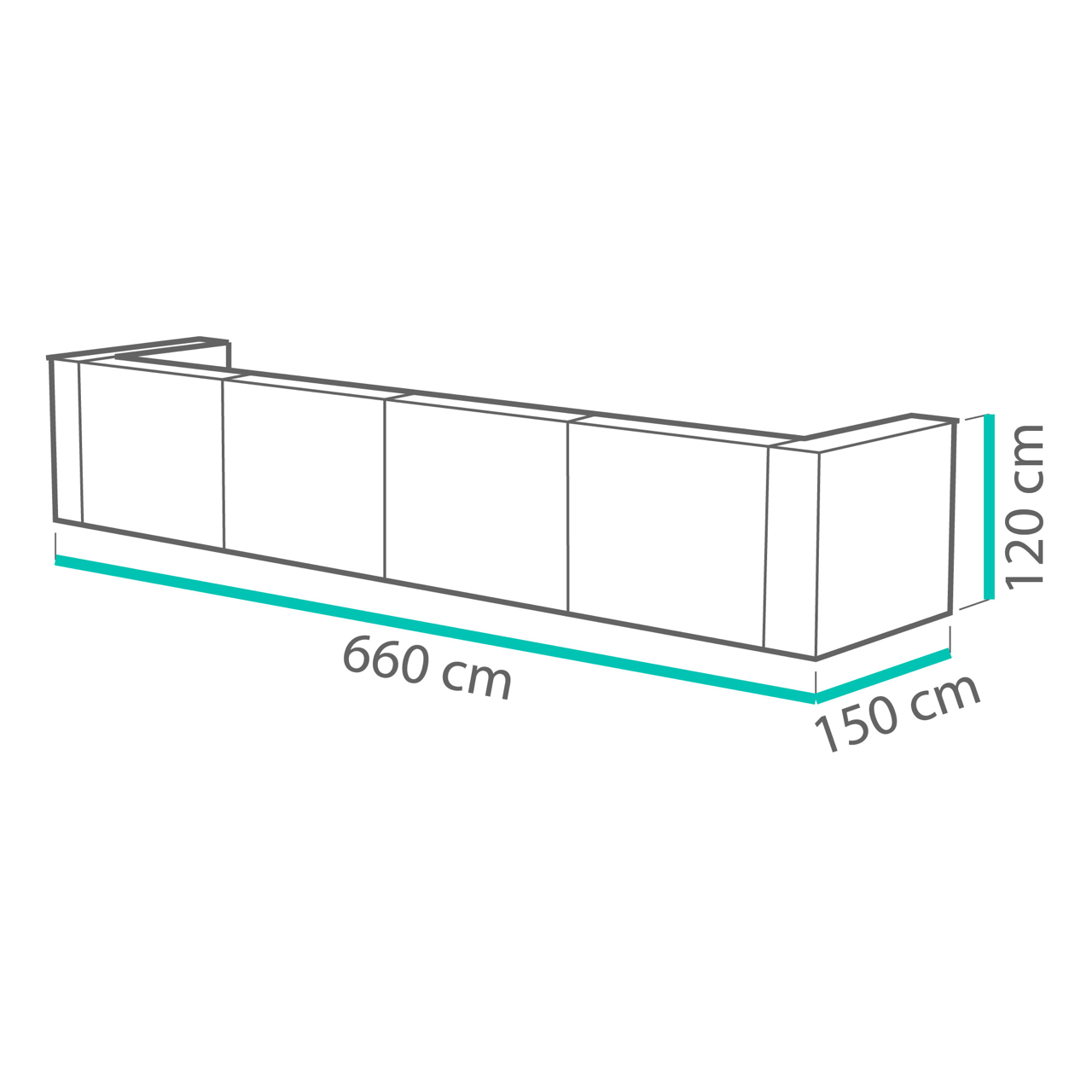 Méret: 150 × 120 × 660 cm