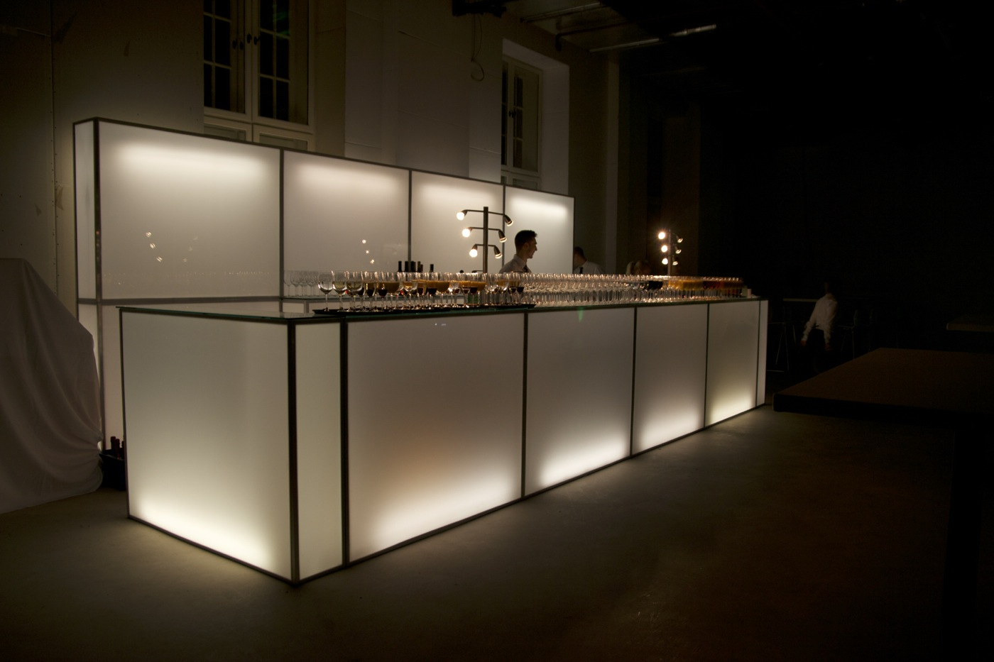 világító bárpult, üveg lappal