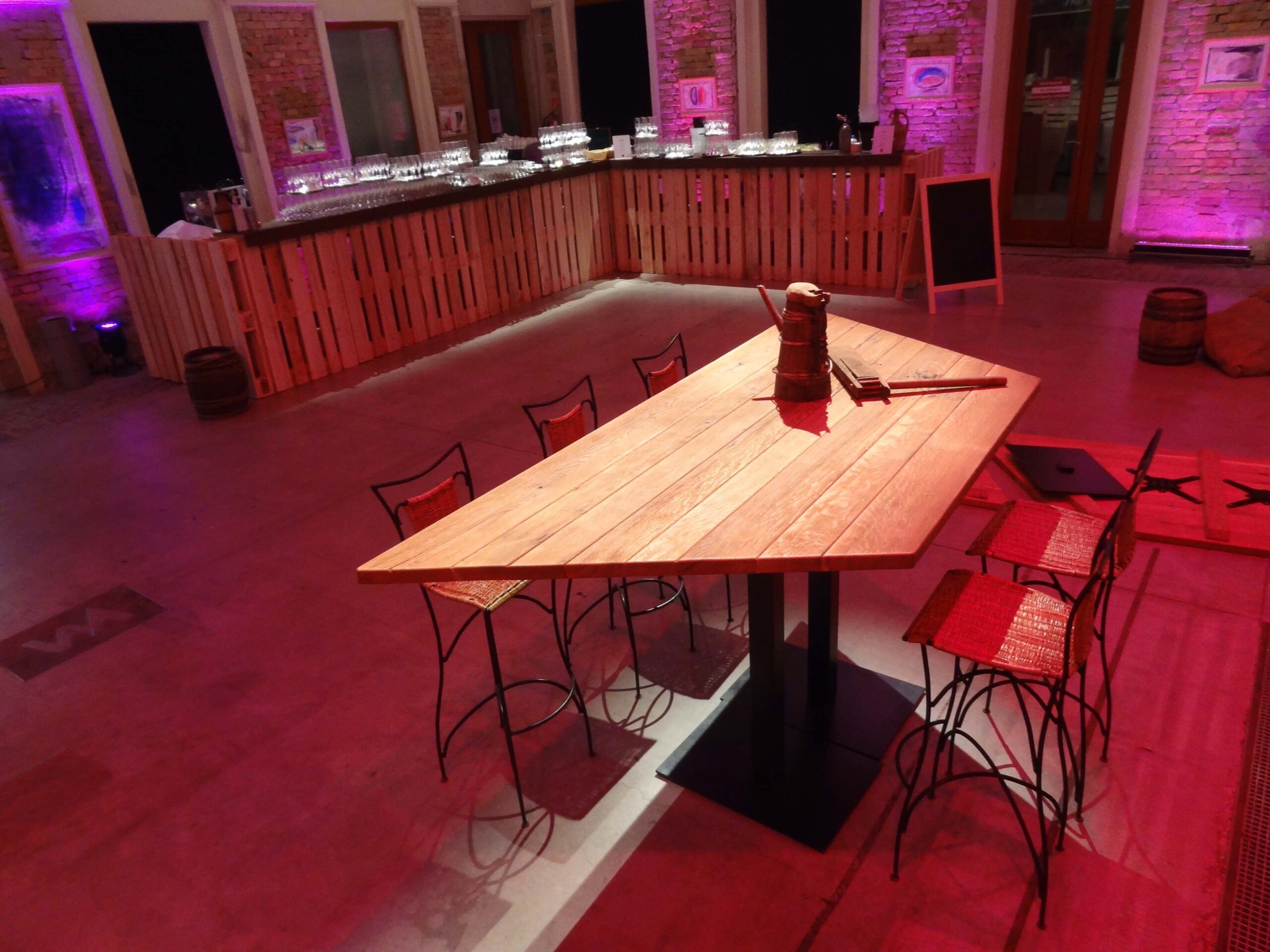 Trapéz alakú, tölgyfa könyöklőinket leginkább állófogadásokra ajánljuk. Elrendezésük izgalmas alakzatokban számtalan módon variálható, asztalként is elérhető. Beltérre ajánljuk.