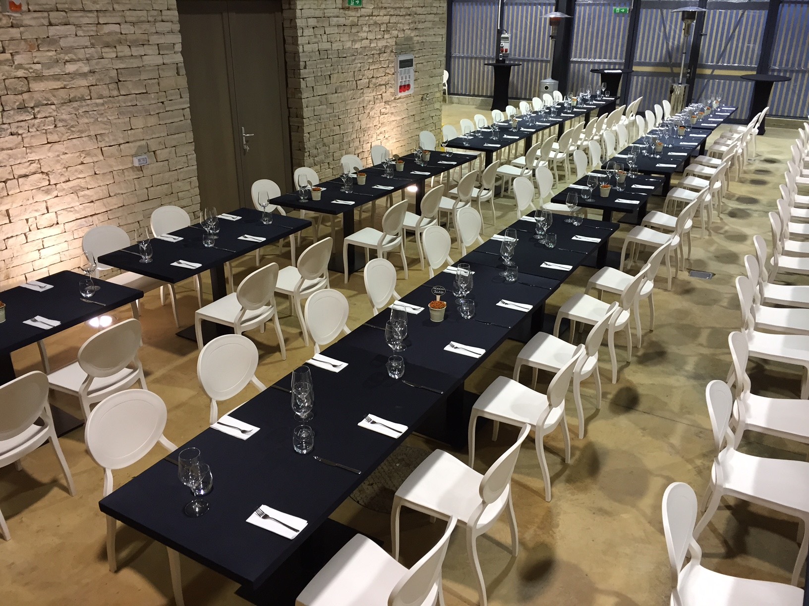 asztal, fekete spandex huzattal