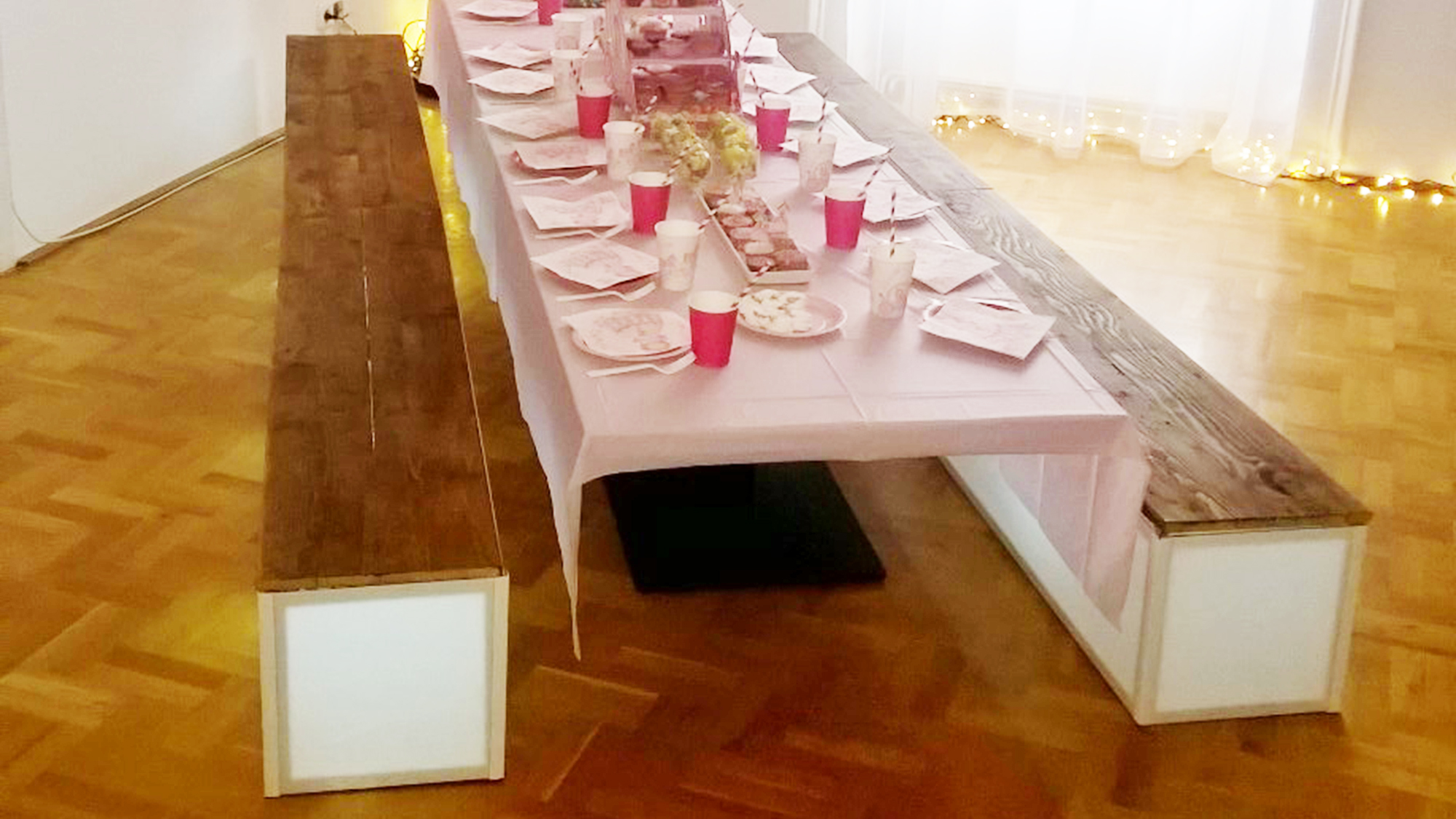 A szett 2 tölgyfa borítású padból és egy asztalból áll. Remek választás gyerekzsúrokra vagy gyereksarkokba. Egyedi kérésre tetszőleges színben rendelhető. Beltérre ajánljuk.
