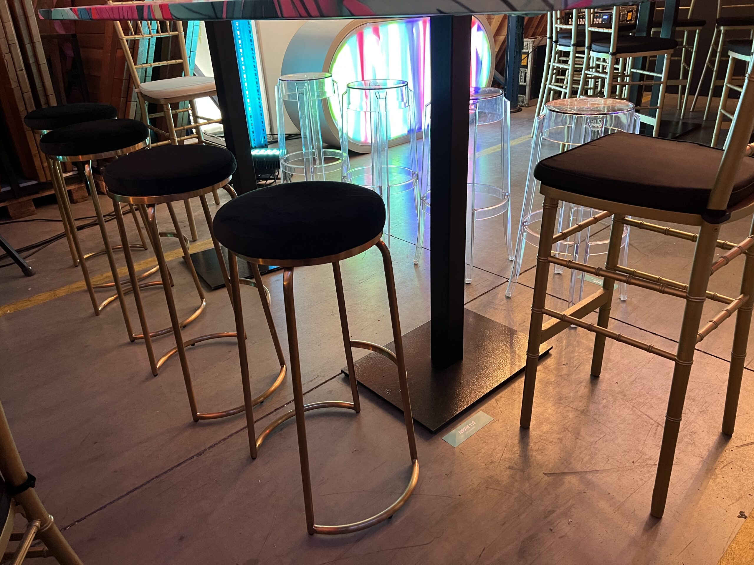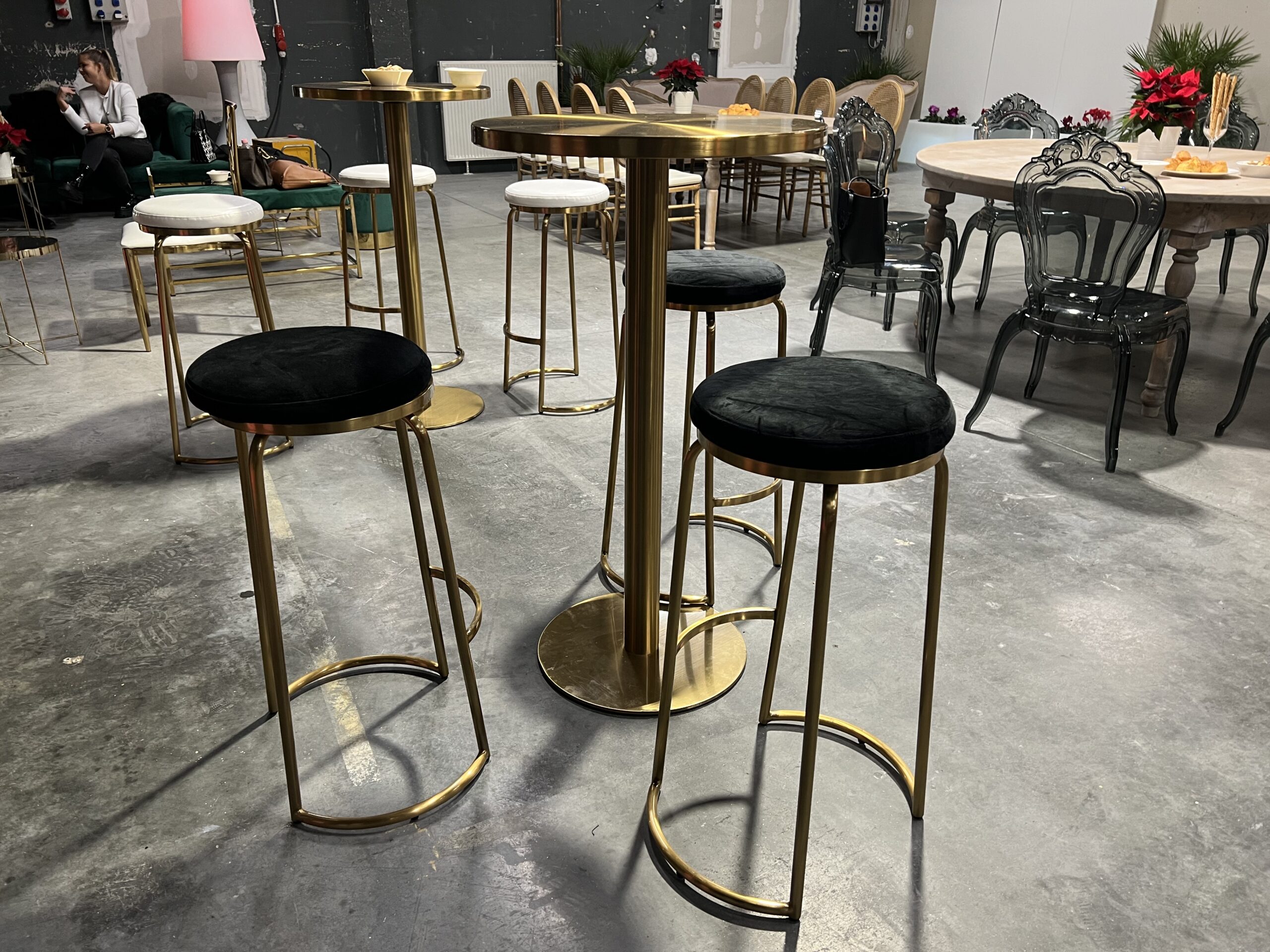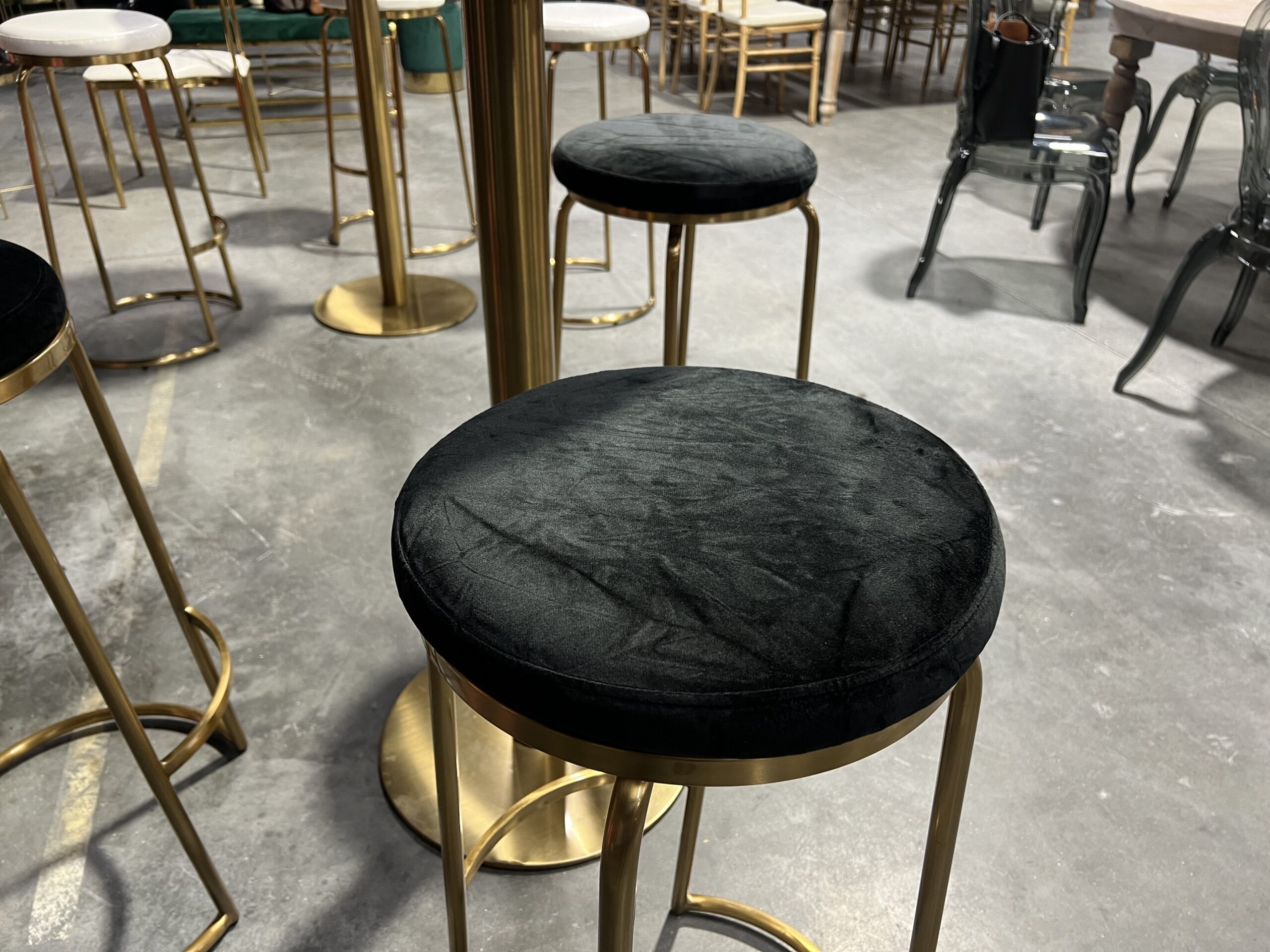 arany bárszék, fekete bársony ülőfelülettel